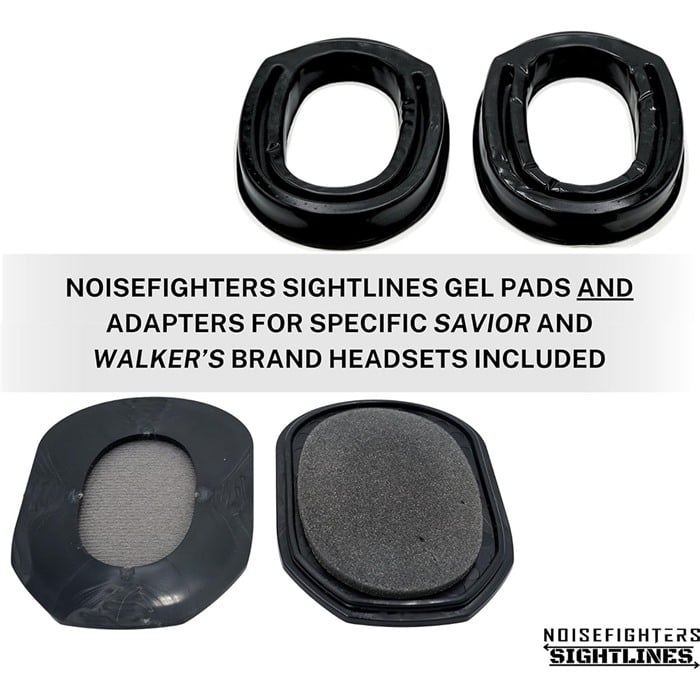 SIGHTLINES GEL EAR PAD ADAPTER PLATES W/ADHESIVE BACKING Noisefighters® Sightlines Gel Ear Pads – with patented relief cut for glasses arms to slide through to prevent headaches and reduce noise Upgrade your headset experience with Noisefighters Sightlines gel ear pads. Made in the USA, these innovative replacement pads feature a patented relief cut feature that allows your glasses to pass through comfortably, eliminating the frustration of headset pressure on your frames. Crafted from premium silicone gel and polyurethane materials, they provide superior noise isolation and long-lasting cushioning for extended wear. Compatible with most popular headsets, these versatile ear pads offer a customized fit and enhanced comfort. Whether you are sport shooting, operating machinery, or enjoying your favorite tunes, Noisefighters Sightlines ensure an immersive audio experience without compromising your hearing or comfort. Upgrade your hearing protection today and experience the difference. Their design features a rim to slide under the clips on headsets like Howard Leight® Impact Sport plus a non-permanent, pressure-sensitive adhesive for a much more secure fit and peel + stick compatibility with their optional snap-in plastic adapter plates to fit headsets from dozens of manufacturers. This model is also compatible with any headset that utilizes oval pads that are 4" tall x 3" wide and allow users to peel off / remove their original pads and apply new adhesive-backed pads. Their gel ear pads are 0.625" thick. HERE ARE THE COMPATIBLE HEADSETS USING EITHER THE ADHESIVE BACKING OR THE INCLUDED ADAPTER PLATES: 3M™ WorkTunes™ Wireless / Bluetooth model (please additionally purchase their Peltor™ ComTac™ style cloned adapter plates if you own the old-style WorkTunes™ headset that only has an AM/FM radio) - 3M™ Peltor™ RangeGuard™ - 3M™ Peltor™ Sport Tactical 100 / 300 / 500 - Awesafe® GF01 - Axil® / Sportear® Trackr™ (Including BLU) - Caldwell® E-Max (standard and low-profile) - GLORYFIRE™ M8056T - Howard Leight® Impact® Sport (including Bolt® version) - Howard Leight® Impact® Pro - Howard Leight® Leightning® - Howard Leight® Sync® - Howard Leight® Verishield - Howard Leight® Viking® - ISOtunes LINK 1.0, LINK 2.0, LINK Aware, DEFY - Kask® SC1 / SC2 / SC3 - Mpow® Noise Reduction Safety Ear Muffs - NoiseBuster® PA4000, PA4100, and PA4200 - Ops-Core® AMP® (note: outer lip may overlap and can be removed with knife / scissors, but this is only an aesthetic issue) - Otto® NoizeBarrier® Range SA and TAC - Peltor™ RangeGuard™ and Peltor™ Sport Tactical™ 100 / 300 / 500 - Pro Ears® - multiple models compatible; customer must verify that their original pads can be peeled off and thier oval 3 x 4" pads can be glued on - Radians® - multiple models compatible; customer must verify that their original pads can be peeled off and their oval 3 x 4" pads can be glued on - Savior Equipment® Apollo - (existing pads can be peeled off the existing plastic plate and residue cleaned up, and new pads can be applied, but we instead recommend additionally purchasing their AD108 Sightlines with Adapter Plates for Savior® Apollo and similar headsets due to the improvement in secure mounting) - TR Industrial® Forestry Safety Helmet and Hearing Protection System - Walker's Game Ear® FireMax® (requires cutting off original pads and reusing the factory-installed plastic plates) - Walker's Game Ear® Recon® (requires cutting off original pads and reusing the factory-installed plastic plates) - Winchester® Passive Folding Earmuffs / Low Pro Passive Folding Earmuffs Noisefighters is in no way affiliated with 3M Peltor® (or any other headset manufacturer) and they have not been involved in the development, manufacturing, labeling, testing, or certification of any Noisefighters products. 3M Peltor has stated that modifying their headsets may negatively impact sound attenuation and it makes the 40 CF 211 Subpart B noise reduction rating inapplicable. FEATURES: Comfort for Glasses Wearers: A patented relief cut, these pads allow glasses to pass through comfortably Fully compatible with headsets from Howard Leight®, 3M Peltor®, Ops-Core®, Sordin®, Walker’s Game Ear®, and other headsets by installing optional adapter plates; please see attached images for compatibility information The adhesive is non-permanent, and pads can be removed dozens of times, or even swapped between headsets, without degrading the bonding strength Designed, manufactured, and assembled in the USA and covered by a one-year unconditional warranty Noisefighters® is a combat veteran owned company