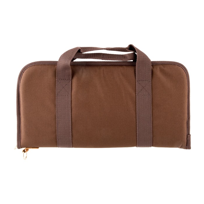 Use as a stand-alone case or for extra protection when carrying your handgun in a range bag with other gear. Large enough for guns with optics, lasers, or tactical lights. Triple protection system includes a tough, Cordura nylon outer shell, dual layer of shock-absorbing foam, and nylon Tricot inner lining. Nylon zipper with brass slide and pull keeps the case sealed; a brass D-ring lets you lock the case (padlock not included). Nylon-web carry strap completes the package. Standard is just the right size for small and mid-size pistols and revolvers. Magnum is built extra large to fit those long barreled, large magnum revolvers and pistols. Deluxe Magnum has an external, zippered pocket ideal for storing extra ammunition, cleaning supplies, shooting glasses, hearing protection or other gear.