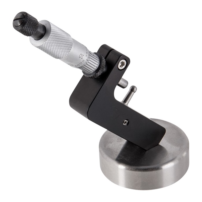 Dieser Micrometer basiert auf einem Starrett-Micrometerkopf, der in 0,0001 Zoll Schritten messen kann. Er wurde speziell für Handlader entwickelt, um die Wandstärke der Hülsenhälse genau zu bestimmen. Der Micrometerkopf und der Amboss sind vollständig verstellbar, sodass du die Wandstärke bis zur Verbindung von Hülsenhals und Schulter messen kannst.