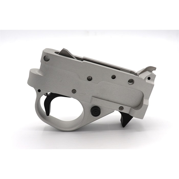 Experience the premium manufacturing of Kidd Innovative Design's Single Stage Trigger Unit. This quick upgrade will give you a superior break without any needed gunsmithing to install. This aftermarket 10/22 trigger is designed to adjust from 1 1/2 pounds to 5 pounds with the turn of a screw. It comes standard in a matte glare free finish silver or black anodized aluminum with our redesigned auto bolt release and interchangeable magazine lever system. The KIDD single stage trigger guard is CNC machined from billet to Tony's specifications. Always following the KIDD Quality of closely held tolerances enabling the cleanest breaking single stage in the industry. How is this different from our two stages? This single stage more closely matched the traditional function of the factory trigger except with a refined feel and adjustability. The KIDD two stage has a travel stage where the trigger blade moves rearward for about a 1/4 of an inch before it comes to the breaking stage. Because of this travel stage our two-stage trigger is able to be reduced in weight to only 6 ounces versus the lowest weight for our single stage is 1 1/2 pounds. FEATURES: Aftermarket Replacement Trigger Unit for the 10/22 Easy Upgrade Improve your Accuracy with a Great Breaking Trigger Great new look!