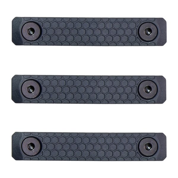 Slate Grips are a drop in/screw on upgrade to any grip, rail or any in-spec MLOK compatible system. The thin profile and raised texture offer an enhanced gripping surface for the user. These panels boast durable steel hardware and extra MLOK lugs (over some similar designs) for increased durability and security. The grip material maintains the ability to withstand high temperatures, providing the user with insulation. Designed by military and competition shooters, Slate Grips will interface well with many of the popular hand stops, vertical grips, and angled grips available on the market today. SBI polymers are optimized for stippling, but we highly recommend BLACK polymers for stippling only due to polymer dye discoloration. SBI’s FDE is a "peanut-butter" brown, and ODG is a direct match for Magpul's coloration. Sometimes photography may show it in a skewed color depending on the studio lights used.Available in 1 slot, 2 slot, or 3 slot variety, Slate Grips are sold in packs of three (3). Material: fiber reinforced high-temp polymer. Length [1-Slot - 1.57in long - 2-Slot - 3.16in long - 3-Slot - 4.74in long]