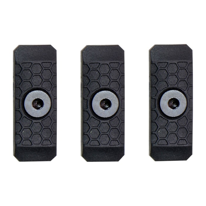 Slate Grips are a drop in/screw on upgrade to any grip, rail or any in-spec MLOK compatible system. The thin profile and raised texture offer an enhanced gripping surface for the user. These panels boast durable steel hardware and extra MLOK lugs (over some similar designs) for increased durability and security. The grip material maintains the ability to withstand high temperatures, providing the user with insulation. Designed by military and competition shooters, Slate Grips will interface well with many of the popular hand stops, vertical grips, and angled grips available on the market today. SBI polymers are optimized for stippling, but we highly recommend BLACK polymers for stippling only due to polymer dye discoloration. SBI’s FDE is a "peanut-butter" brown, and ODG is a direct match for Magpul's coloration. Sometimes photography may show it in a skewed color depending on the studio lights used.Available in 1 slot, 2 slot, or 3 slot variety, Slate Grips are sold in packs of three (3). Material: fiber reinforced high-temp polymer. Length [1-Slot - 1.57in long - 2-Slot - 3.16in long - 3-Slot - 4.74in long]