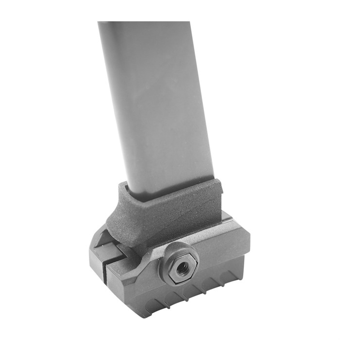 Ein Picatinny Rail Adapter, der an der Unterseite einer bestehenden Magazinfußplatte haftet. Bevorzugt, wenn du kein Licht-kompatibles Holster hast und mit Holster-Zügen trainieren möchtest.