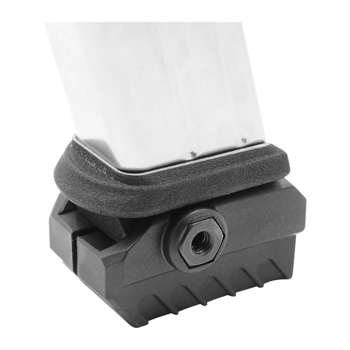 Ein Picatinny-Schienenadapter, der an der Unterseite einer bestehenden Magazinbodenplatte befestigt wird. Bevorzugt, wenn du kein Holster hast, das für eine Lampe geeignet ist, und mit Holster-Zügen trainieren möchtest.