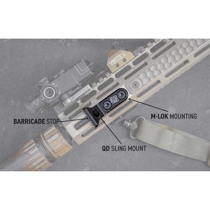Der Sons Of Liberty Gunworks Presscheck Barricade Stop ist ein präzisionsgefertigtes MLOK-Zubehör, das zwei Funktionen in einem kompakten Fußabdruck vereint: Er dient sowohl als Barricade Stop als auch als QD Sling Mount.