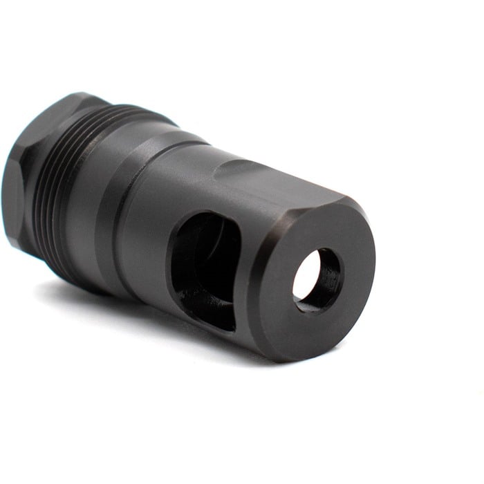 Setze das Mündungsgerät mit einem Drehmoment von etwa 15-25 ft lbs an. Stelle sicher, dass das Mündungsgerät quadratisch gegen die Schulter sitzt. Wenn du den Schalldämpfer auf das Mündungsgerät setzt, achte darauf, dass die Gewinde und Konen sauber sind. Ziehe den Schalldämpfer mit 10 ft lbs fest und achte auf die Ausrichtung. Viel Spaß!