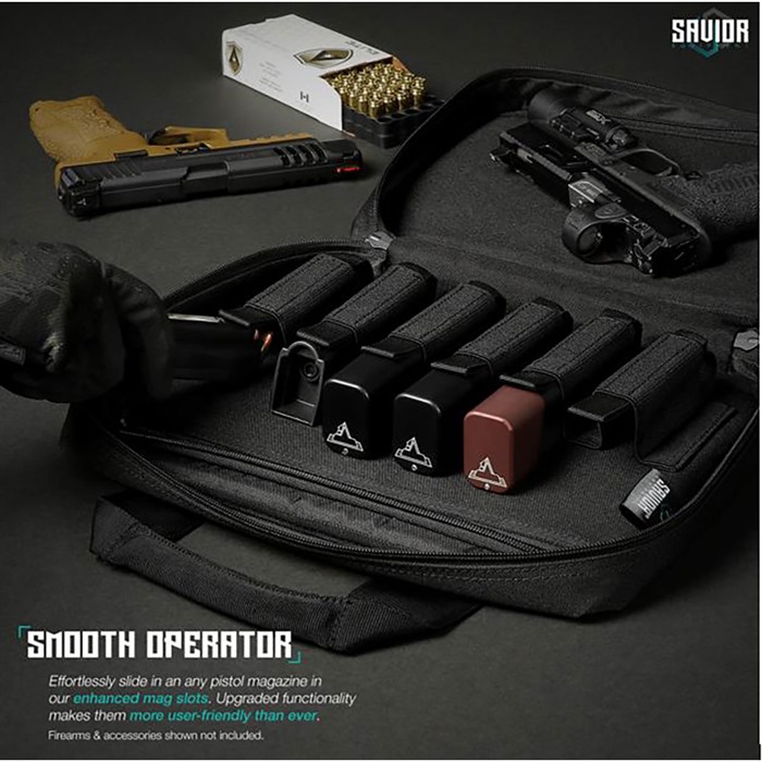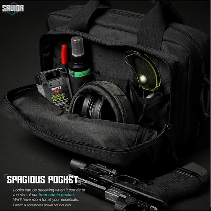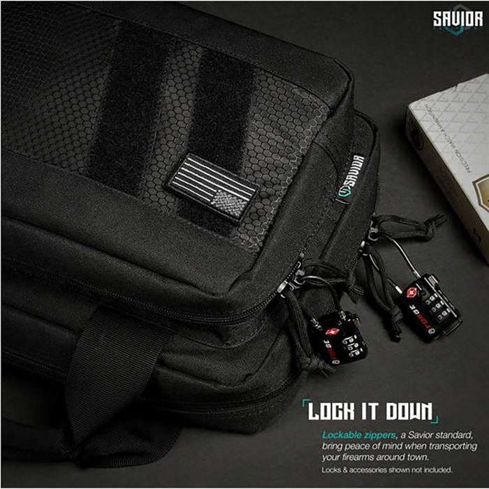 Savior’s line of Specialist bags, with its exclusively unique front panel, are designed and tested specifically for professionals like you in mind. Features on this pistol case are tailored to hold all your range day accessories. FEATURES Packed with features to simplify your haul. Cushioned Pistol Compartments Enhanced Knitted Elastic Mag Slots Fits Most Sized Mags Lockable Admin Pocket Lays Completely Flat When Opened 600D Polyester Exterior & Interior Shell Knitted Elastic Bands Lockable Zippers Double-Stitched Seams Morale Patch Panel External: 13” x 5.5” x 9” Internal: 12.5” x 2.5” x 8.5” Pistol Pockets: 12.5” x 7.5” Enhanced Magazine Slots Max Mag Height: 8.5” Max Mag Width: 1.75” Front Compartment: 12” x 2 x 7.5” U.S. Patent No. D911703 Imported