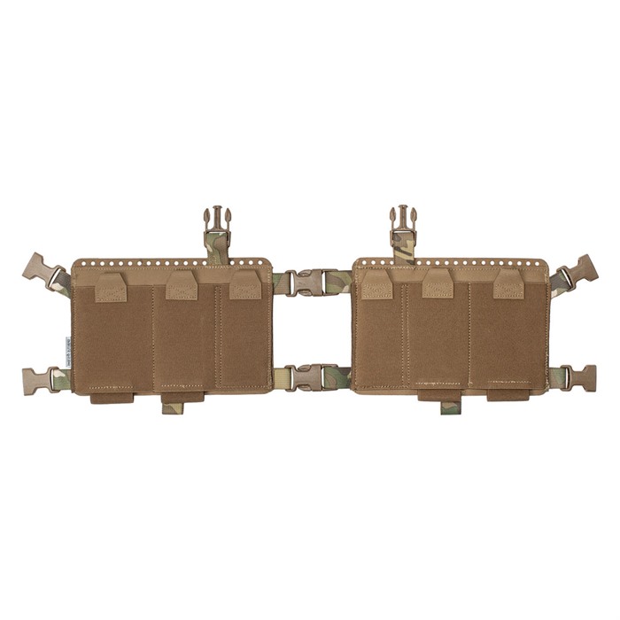 Die Chest Rig-Paneele sind über zwei gleitende Fastex-Schnallen verbunden, die einen sicheren Verbindungspunkt bieten sowie ein schnelles, einhändiges Öffnen und Schließen ermöglichen. Dies ist besonders nützlich bei Aktivitäten, die eine offene Frontkonfiguration erfordern (z.B. im Liegen). Sie ermöglichen auch Mikroanpassungen an der Vorderseite, ohne die Breite des Rückengurtes ändern zu müssen.