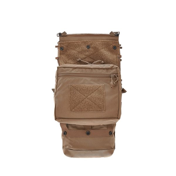 Verwendet die oberen Reißverschlüsse, um das Panel an der Plattentasche zu befestigen. Dies komprimiert das Panel und ermöglicht einen "leichten" Tragekomfort. Ideal für Assaulters, die eine schlanke und enge Konfiguration wünschen und nur Dinge wie einen kleinen Hydratationsbehälter, Slap Charges, Flashbangs und ein GP-Kit transportieren müssen.