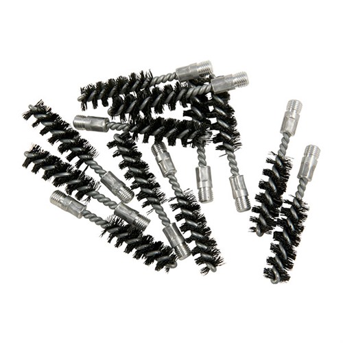 Der Schaft ist einteilig, geschlungen und gewickelt (nicht zwei, die zusammen gedreht und abgeschnitten wurden). Die Nylonlaufbürsten der neuen Generation greifen Kupfer- und bronzebasierte Geschossbeschichtungen aggressiv an und sind ebenso hart zu bronzenen Reinigungsbürsten. Unsere Nylonbürsten halten diesen Superreinigern stand und verursachen keine Genauigkeits-ruinierenden Kratzer.