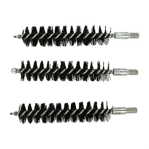 Die Bürsten haben einen einteiligen, geschlungenen und gewundenen Schaft (nicht zwei, die zusammen gedreht und abgeschnitten sind). Unsere Nylon Bore Brush der neuen Generation bekämpfen aggressiv Kupfer- und Bronze-basierte Geschossbeschichtungen und sind ebenso hart zu Bronze-Reinigungsbürsten. Unsere Nylonbürsten halten diesen Super-Reinigern stand und verursachen keine Genauigkeits beeinträchtigenden Kratzer.
