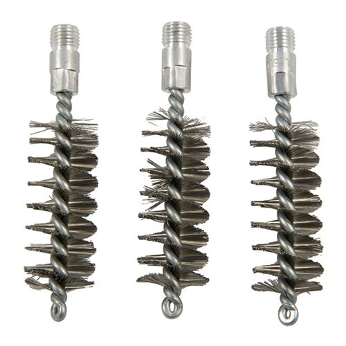 Edelstahl Laufbürste - Für stark verunreinigte, verstopfte oder verrostete Läufe kann die aggressive Reinigungswirkung einer Edelstahlbürste helfen, sie wieder sauber zu bekommen. Allerdings beschleunigt die aggressive Wirkung den Verschleiß, und eine regelmäßige Anwendung kann die Lebensdauer des Laufs verkürzen.