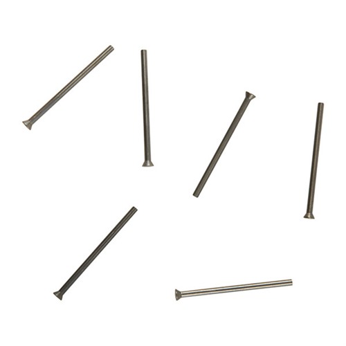 We are constantly encouraging you to always use starting punches to break tight pins loose - then use a "drift" or pin-punch to drive the pin the rest of the way out. This saves bending pin punches, but much more importantly, it prevents fine guns from getting pin punch mars should the pin punch bend and slip - or - break, and scratch. To bring you the best possible Starter Punches, we have had special, Short Replaceable Pins made up to fit our famous Gunsmith's Replacement Punch Set Handles. Their regular use will definitely improve your production . . . and your professionalism!