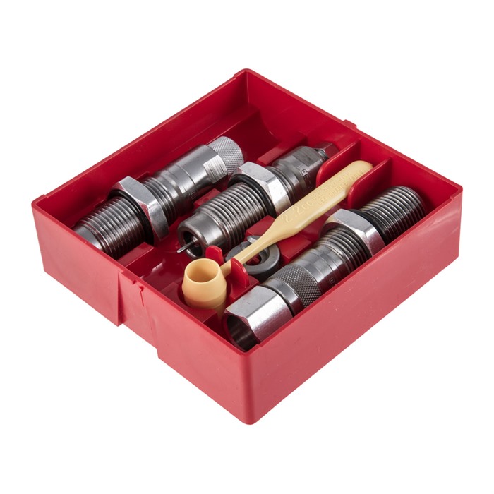 734307905637 Das Lee Steel 3-Die Rifle Set enthält eine Full Length Sizing Die, eine Bullet Seating Die und eine Powder Through Expanding Die, einen Universal Shell Holder, einen Powder Dipper und Anleitungen/Beladungsdaten. Diese Dies sind aus Stahl, nicht aus Hartmetall, daher müssen die Hülsen gefettet werden.Lieferzeit ca. 14-21 Werktage.
