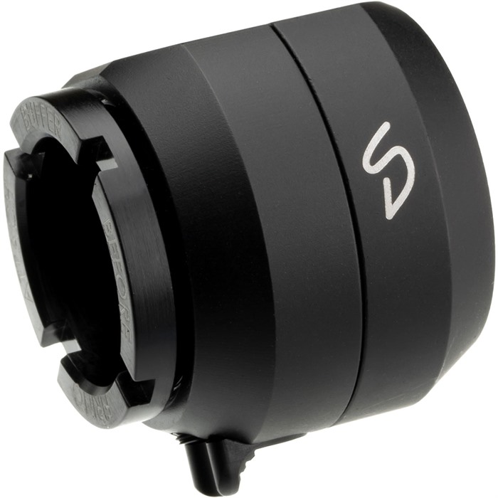- Wiederanbringen: Richte die beiden Teile aus, drücke sie hinein und drehe sie im Uhrzeigersinn um 30 Grad. Der Stahlverriegelungsmechanismus sichert den Adapter automatisch.