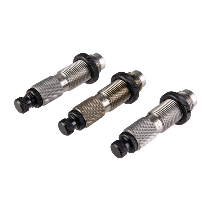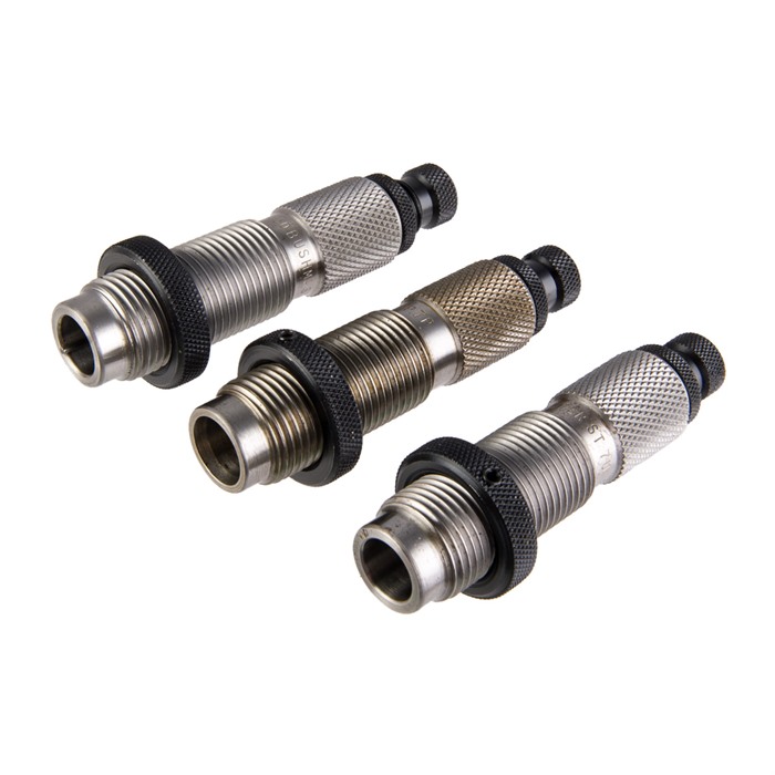 Die Redding Die Sets für gerade Wandpatronen bestehen aus drei wichtigen Komponenten. Diese sind notwendig, da es nicht möglich ist, gerade Wandpatronen in einem einzigen Schritt vollständig zu resize und gleichzeitig den Hals für eine ordnungsgemäße Geschossanpassung zu erweitern.