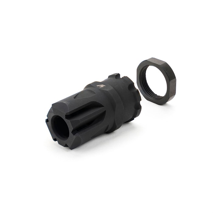 Die X-Comp Element C wird mit einer Strike Industries Jam Nut in M18x1 RH-Gewinde geliefert, die dir hilft, die Installation und das Timing eines Mündungsgeräts ohne den CZ Click Stop Latch zu erleichtern, wenn du einen Aftermarket Scorpion Handguard verwendest. Die Element C nutzt kleinere Port Cuts, da das 9mm Treibmittel viel schneller verbrennt, wodurch die Gase schneller maximale Expansion erreichen.
