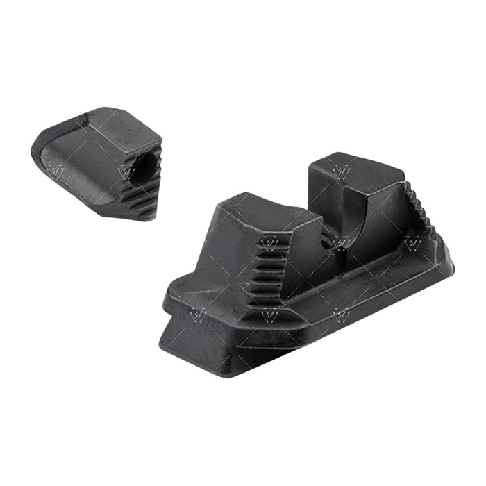 The great thing about Glock's factory sights is that they're so easy to replace. There's no sense in sticking with the plastic sights that ship from Glock's factory when you have great aftermarket options like the Strike Industries Strike Iron Sight Set designed for most of Glock's popular models. These sights are designed to give you a natural alignment that aids in precision aiming, all while giving you a chance to customize your pistol to fit your needs. Each Strike Industries Strike Iron Standard Sights are designed to provide natural light on either side of the front blade for greater focus and accuracy. The U-notch rear sight makes it easy and intuitive to obtain a sight picture, and the stepped design of the rear edge on both sights reduces glare. The sights are made from SUS630 hardened stainless steel, and the front sight is left blank so users can add the paint they need for improved focus. The rear sight features a vertical line that catches light and helps in aiming. These Strike Industries Strike Iron Standard Sights are designed to fit most popular Glock models, including the G17, G17L, G119, G22, G23, G24, G25 and G26.