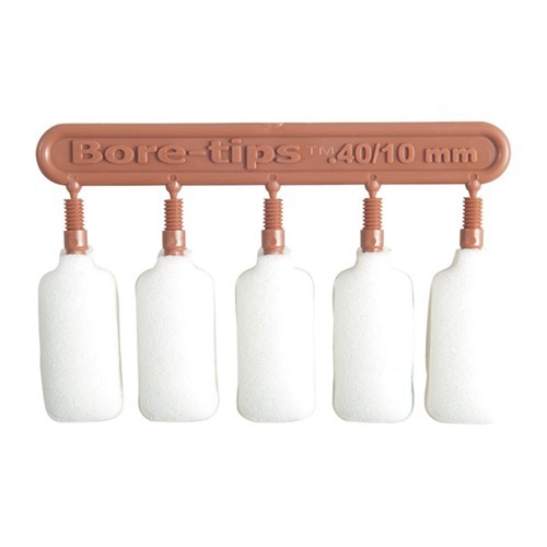 Bore Tips are a convenient, all-in-one replacement for traditional jags and patches. They feature plastic adapters that fit 8-32 female threads commonly found on cleaning rods, and are reusable up to five times. Bore Tips tightly fit the bore for thorough cleaning, and the spongy foam absorbs solvents and oils for uniform application. Stands up to most cleaning chemicals. Note: .45 caliber Bore Tips will not fit .44 caliber barrels. Pair up with J-B Bore Cleaning Compound for a very easy clean.