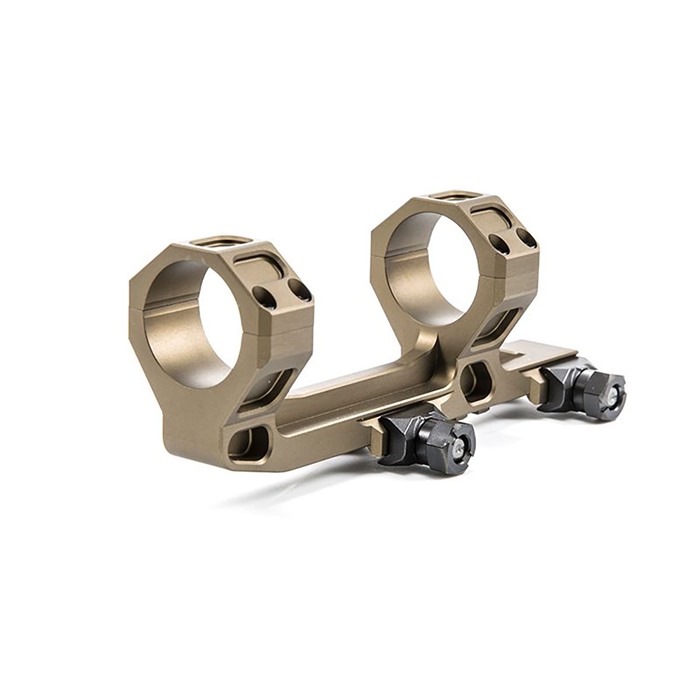 The Geissele AR-15/M4 Super Precision series of scope mounts are optimized for use with an AR-15/M4 upper. The mounting surface spans 7 picatinny sections and utilizes 4 shear lugs. These mounts use Geissele’s update of the classic nut and bolt method for clamping the mount to the picatinny rail, which is the most secure method of attaching your scope to your weapon. Each nut and bolt combination provides 1,400 pounds of clamping force, much more than any lever mounting arrangement. The Geissele Super Precision Mounts are available in 7075-T6 high strength aluminum. To create a mount with the best possible return to zero Geissele machines the entire mount from a single piece of billet aluminum. This allows them to add pockets and ribs throughout the mount for added strength and rigidity. It allows them to line bore the caps to each another and then serialize the caps to the body. The line bore operation creates the best possible fit to the body of your scope so that you can apply proper torque without fear of crushing or damaging the body of your scope. Another advantage of machining from a single piece of aluminum is that Geissele is able to create a mount with cap locations that will suit a wide variety of scopes. All mounts are available in zero and 20 MOA cant options, and either black type 3 hard coat anodize or DDC (Desert Dirt Color) type 3 hard coat anodize.