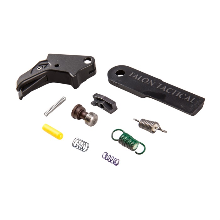 The S&W M&P 1.0 drop-in trigger kit uses the Agency Arms Flat=Faced Trigger Shoe, and is paired with the Apex Tactical Specialties forward set sear kit. The Apex forward set sear shortens the stroke of the trigger by dropping the striker at a point farther forward than the factory sear, while the ultimate striker block delivers a smoother trigger pull and reduces almost all false reset by improving the radius on the striker block face. The S&W M&P 1.0 drop-in trigger kit forward set springs kit produces a trigger pull of 3.0 to 4.0 pounds, depending on the trigger return spring installed. Not recommended for duty/carry applications Requires the use of the sear housing block designed for the large size sear plunger and spring The S&W M&P 1.0 drop-in trigger kit does not fit the 2.0, Shield, Bodyguard, 22 or 22 Compact pistols.