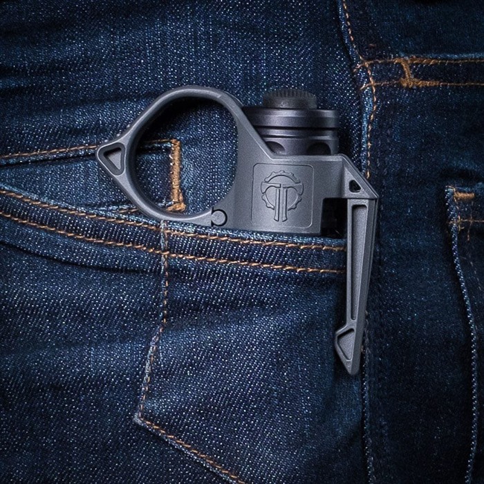 - Ermöglicht das zuverlässige Entnehmen und Indizieren der Taschenlampe aus Taschen und Pouches.