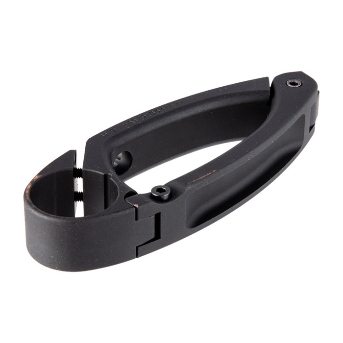 Um die Funktionalität des Griffs zu aktivieren, drücke den Release-Button und ziehe den Arm nach unten. Dadurch entsteht die Ablage, die das Gewicht des Laufes deiner großen Handfeuerwaffe ausbalanciert.