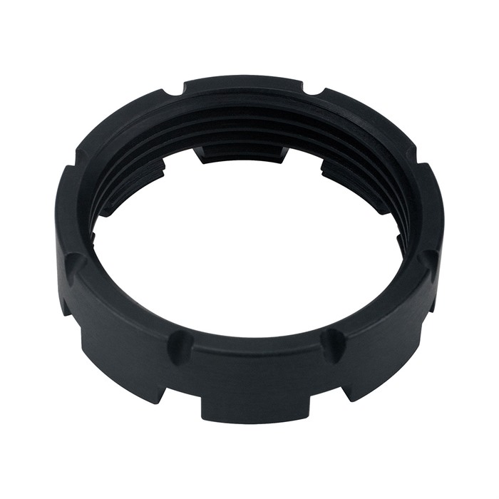 Die patentierte EZ Castle Nut ist aus hochwertigem 4140 PH Legierungsstahl gefertigt und mit einem langlebigen, diamant-harten schwarzen Nitride-Finish versehen. Sie wurde präzise auf einer modernen Schweizer CNC-Drehmaschine bearbeitet, um Toleranzen zu erreichen, die den militärischen Spezifikationen (mil-spec TDP) entsprechen oder diese übertreffen, einschließlich echter Klasse 3 Gewinde.