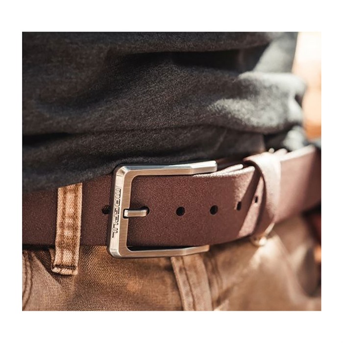 In 2021, Magpul took their already reliable and versatile Tejas Gun Belt - “El Burro” and gave it some upgrades. With all-new materials and design, the buckle comes in brushed antique silver and sits flat against the waist. This makes our newest “El Burro” more comfortable than ever and significantly reduces printing when you’re carrying. It also includes easily removable tool-free fasteners if you need to remove the buckle for any adjustments. The “El Burro” is built from a single flexible layer of waterproof, textured, reinforced polymer that provides dress belt comfort with stretch and sag-free performance whether you’re carrying or not. It’s cut in a standard 1-1/2” size that fits most belt loops and holsters, and we also refined the construction to include a tapered tip, making it easier to put on and take off.