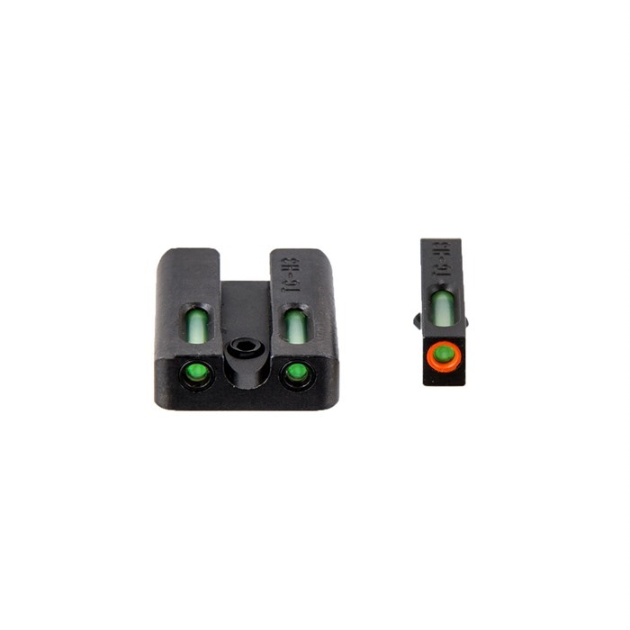 The TFX Pro Night Sights are constructed with duty or military use in mind. These sights feature both a Tritium vial for constant illumination, as well as fiber optic rods that amplify ambient light. Not only do these sights have both Tritum vials and fiber optics, but they are hermetically sealed in a redesigned TFX capsule, that provides superior protection against oils, chemicals and cleaning solvents. No more worrying about damaging your sights when cleaning! Front Sight features an orange outline, providing a contrast in colors and faster target acquisition. Rear sights features a U-notch design and angled front face for emergency slide racking. Sight bodies are CNC machined steel and have a Truglo “fortress” finish. TFX Pro Sights sets are Made in the USA, using Swiss Tritium.