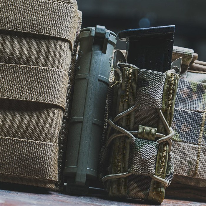 - Schlanke vertikale Form, die weniger als 1 MOLLE-Webbing-Spalte einnimmt und Platz für andere Ausrüstung wie Erste-Hilfe-Sets, Munition und Werkzeuge schafft