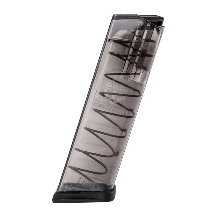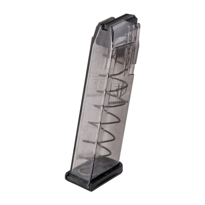 The ETS transparent magazines for Glock® pistols take visibility and safety to new level. Users are able to quickly determine the round count and ammo type from any viewing angle. These mags have been through rigorous testing, including several thousands of rounds without failure, using all generations and size of Glock® pistols. ETS magazines function with a variety of ammunition types & styles. Fully compatible with aftermarket base plates Reliably lock back the slide on empty magazine Drop free Easy disassembly for cleaning Specially designed base plate has a grip rib to aid in extraction Advanced Transparent Polymer Testing included Repeated drops from 8ft fully loaded without breaking or cracking Extreme thermal conditions ranging from -60 to 180 deg F for extended periods Extremely elevated UV exposure for several months to insure it will not become brittle. Unmatched chemical resistance including Deet, Fuels, Cleaners Creep resistant, your mag will not creep/spread when stored fully loaded