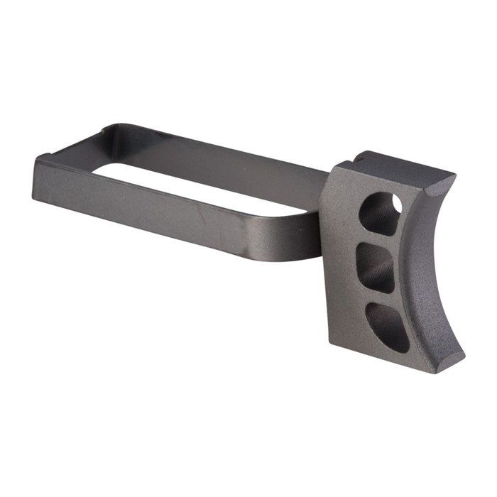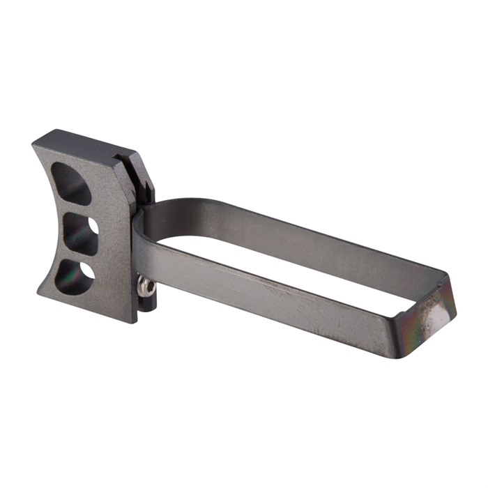 Die Oberfläche des Trigger Schuhs ist glatt und frei von Serrationen und Löchern für die Übertravel-Schraube, die deinen Abzugsfinger während langer Trainingseinheiten scheuern und abreiben könnte. Der feste Übertravel-Stopp ist dauerhaft fixiert, sodass er sich nicht verschieben kann und deine Pistole in einem Notfall funktionsunfähig macht.