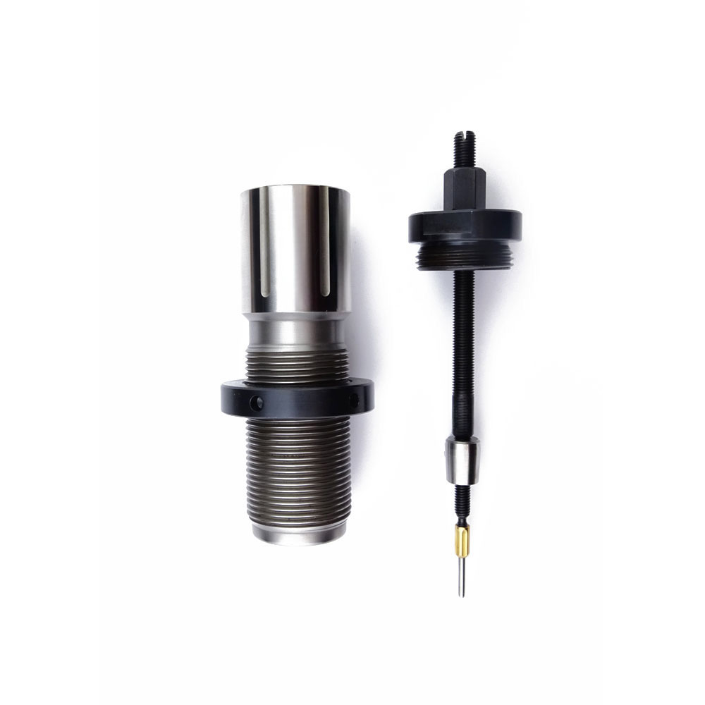 Die Vollkalibriermatrize dient zum Kalibrieren der gesamten Patronenhülse. Sie besteht aus dem soliden Matrizenkörper und der Spindel Innenaufweiter sowie dem Ausstoßerstift. Der Matrizenkörper ist gehärtet, das Innenprofil ist spiegelpoliert. Der Innenaufweiter ist aus Werkzeugstahl gefertigt, gehärtet und feingeschliffen. Die komplette Spindel lässt sich nach oben herausnehmen, so dass beim Wiedereinbau nicht erneut justiert werden muss. Das Aussenkalibrieren erfolgt beim Hineindrücken der Patronenhülse in die Matrize. Das Kalibrieren des Hülsenhalses von innen erfolgt beim Herausfahren aus der Matrize. Damit wird die Ladefähigkeit der Hülse wiederhergestellt und ein fester Geschoßsitz erreicht. Die richtige Stellung der Matrize in der Presse wird mit der Kontermutter eingestellt. Technische Informationen: Gewinde: 1 1/2''Expander (Durchmesser): 12,91mm Alle relevanten Bauteile tragen eine Artikelnummer zur einfachen Nachbestellung bei Bedarf. Einstellhinweise und Hilfestellung zur Auswahl von Zubehör und Ersatzteilen finden Sie in der Bedienungsanleitung. >Die Bedienungsanleitung gibt es hier