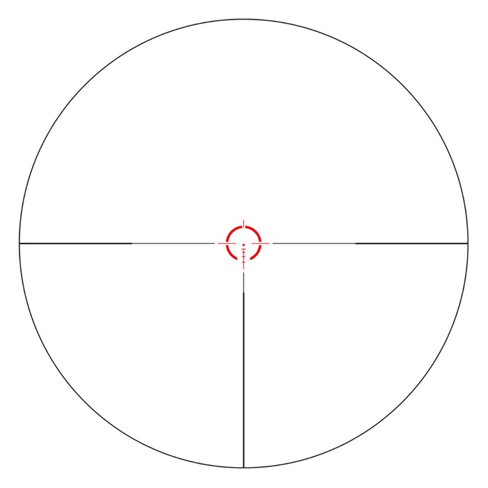 - Trident Reticle: Ideal für schnelle Zielerfassung in unmittelbarer Nähe und gleichzeitig geeignet für mittlere Entfernungen mit entweder einem 5.56/.308 BDC oder MOA Leiter.