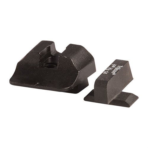 Used by numerous IDPA and USPSA National champions, as well as law enforcement professionals, these streamlined, steel sights are built for fast target acquisition. A variety of front and rear sight configurations include self-illuminating Tritium inserts. Designed to fit factory dovetails. Ramped Rear Sights have a non-serrated face Drift-adjustable for windage, with a locking setscrew to hold the setting. Tactical rear sight features a unique Wave Profile contour with concave corners for an extra wide field-of-view and smooth, no-snag removal from the holster. U-shaped notch has gently radiused corners to help direct the eye quickly to the front sight acquisition. Rear notch is .150" wide and front sight is .125" wide by .215" tall.