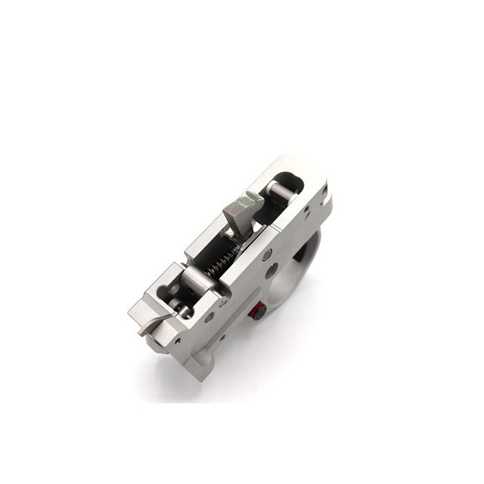 Der KIDD Abzugsbügel wird aus 6061 T6 Billet-Aluminium CNC-gefräst und jede Baugruppe wird mit größter Sorgfalt hergestellt. Der Hammer, der Sear, der Transfersteg und andere interne Teile aus Werkzeugstahl werden ebenfalls CNC-gefräst und mit einem Draht-EDM geschnitten. Alle Federn werden von einem .22-Enthusiasten und KIDD-Kunden, Murphy & Read Springs, hergestellt. Wir montieren jeden Abzug in der KIDD-Werkstatt und verwenden die strengsten Qualitätskontrollen, da unser Ruf auf jedem Abzug basiert.