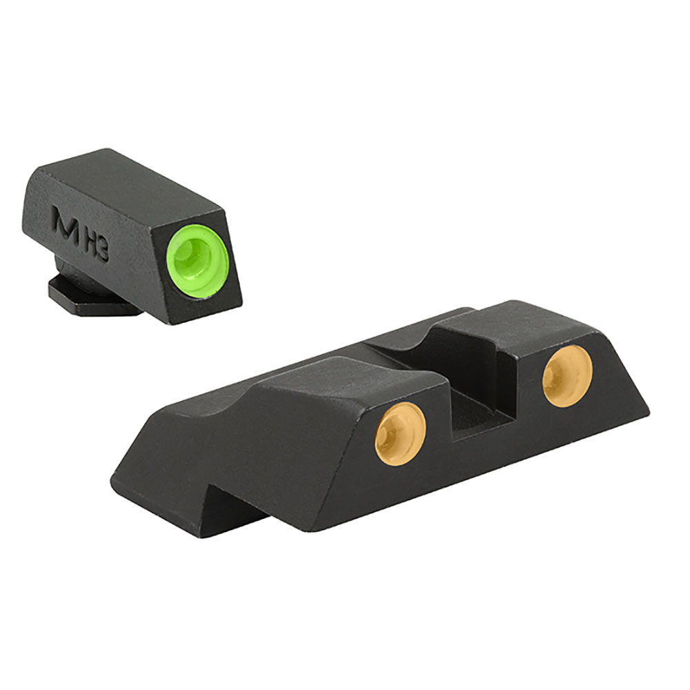 Meprolight® reagiert auf die Bedürfnisse der Nutzer; unsere TRU-DOT® Modelle sind in verschiedenen Tritium-Punktfarben für das Hintervisier erhältlich: Grün, Gelb, Orange (Gelb oder Orange nur für ausgewählte Modelle) und mit grünem Tritium-Punkt für das Vorder visier.