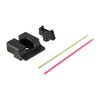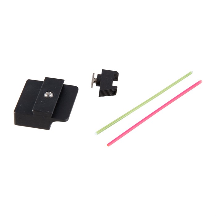 The TTI Ultimate Fiber Optic Sights for GLOCK® were designed to the specifications of Taran Butler and Robert Vogel for the optimum sight picture and brightest fiber optic front sight possible. The fiber optic dot has been moved up to the very top of the front sight so the shooter doesn't get confused with shooting off the top of the dot or a big, thick blade sitting above it, which can cause the shooter to shoot either too high or too low. The fiber optic bar is NOT partially embedded into the floor of the sight, which means more light reaches a greater portion of the circumference of the rod. The shiny stainless steel screw reflects even more light right to the middle of the rod.The front sight is .235" tall and .115" wide for perfect point-of-impact with the GLOCK® 17, 17L, 19, 20, 21, 22, 23, 24, 34, and 35.The rear is .245" tall. The tighter .125" rear notch helps dramatically when shooting small steel and tight shots at a distance.Rear serrations cut down on glare. Both front and rear sights are billet stainless steel coated with Diamond Black Ion Bond (95 Rockwell hardness) for the highest level of rust resistance and the strongest finish.