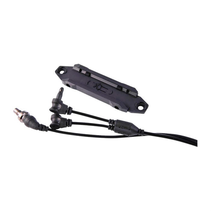 Dieser TAPS-Schalter wird standardmäßig mit einer Surefire Light-Leitung und einer MIL-Standard / Crane Laser-Leitung geliefert, die für NATO-Standardlaser von Insight Technology, Steiner, B.E. Meyers und anderen geeignet ist.