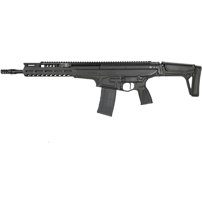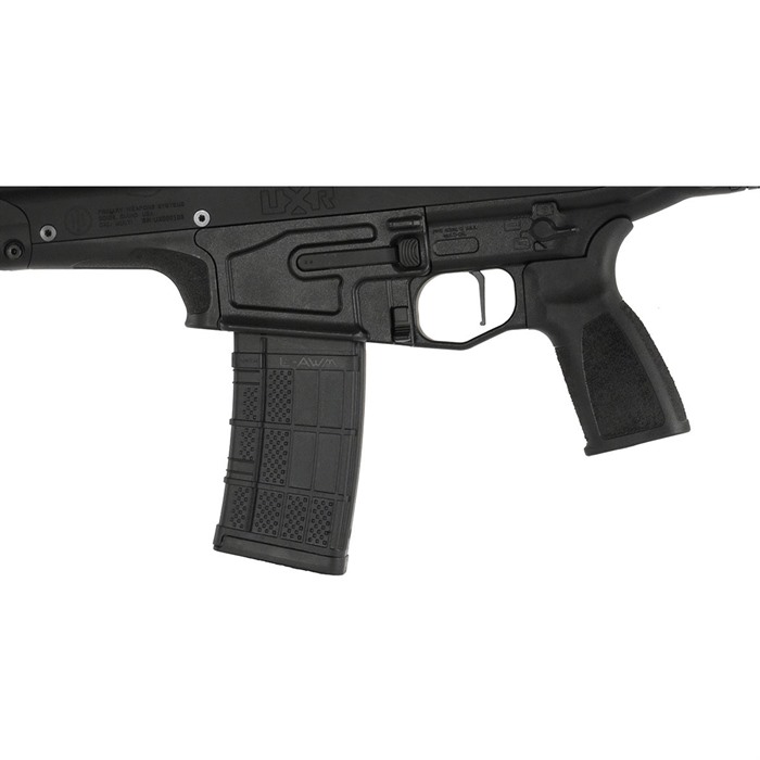 UXR THE NEW PROPRIETARY UXR, OR “USER XCHANGE RIFLE”, IS THE PINNACLE OF FIREARM INNOVATION. THIS REVOLUTIONARY SYSTEM OFFERS UNMATCHED MODULARITY AND PERFORMANCE. FEATURES: XCHANGE Buttstock Module: Picatinny/1913/STANAG Rail mount interface, foldable with 6 position adjustable length of pull for 2.5” travel, ambidextrous LOP button and QD sling cups, 1” webbing sling slot mount, comfort-shoot rubber buttpad, and completed with a 2 position, height-adjustable cheek rest. Reversible Folding Stock Mount: Choose your preferred side for folding the XCHANGE Buttstock Module. XCHANGE Fire Control Housing Module: ergonomically designed UXR pistol grip also compatible with other AR15 style grips, ambidextrous QD sling cups, and oversized trigger guard. XCHANGE Fire Control Module: Housing compatible with most AR15 triggers. XCHANGE Magazine Well Module: Easily exchange modules for 5.56 NATO or 7.62 NATO magazines, complete with ambidextrous magazine release button and bolt stop/release 7075 Aluminum Receiver: Serialized upper receiver; universally compatible with multiple caliber configurations. XCHANGE Titanium Trunnion: Return-to-zero-barrel clamp for precision modularity. STANAG Top Rail: 18” usable length for optics and accessory mounts. XCHANGE Handguard: Tooless and replaceable MLOK handguard for length customization. Ambidextrous Folding Charging Handle: Snag-free and configurable for left or right handed users. XCHANGE Barrel Exchange System: Swap calibers and barrel lengths rapidly with standard tooling, while maintaining repeatability and accuracy. Ambidextrous Rocker Valve/Modified Long-Stroke Gas System: Select 3 gas settings effortlessly. XCHANGE Evacuation Chamber: Supports suppressed and high rate of fire by removing noxious gasses from the operator’s face and keeping the operating system cleaner. Taper Muzzle Shoulder Lock: Perfect alignment and accessory lock for muzzle devices. Universal Recoil Spring: Adaptable to various calibers and configurations. Universal Bolt Carrier Group: Quick exchange bolt head assemblies for easy caliber conversions 14.5 inch models feature a pinned and welded muzzle device to bring the barrel overall length over 16 inches.
