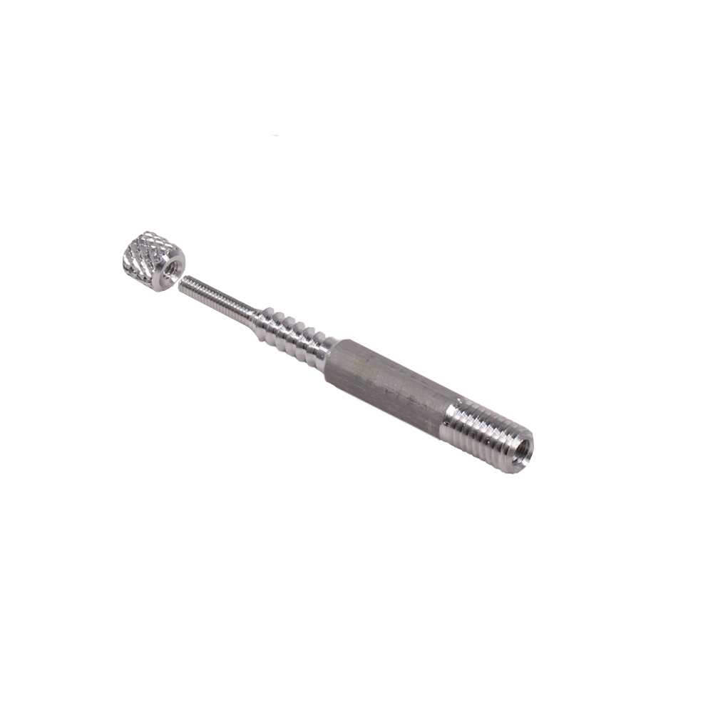 - Schraube den Adapter vorsichtig in das Gewinde des Putzstocks (M5 Außen / 1/8" Innengewinde).