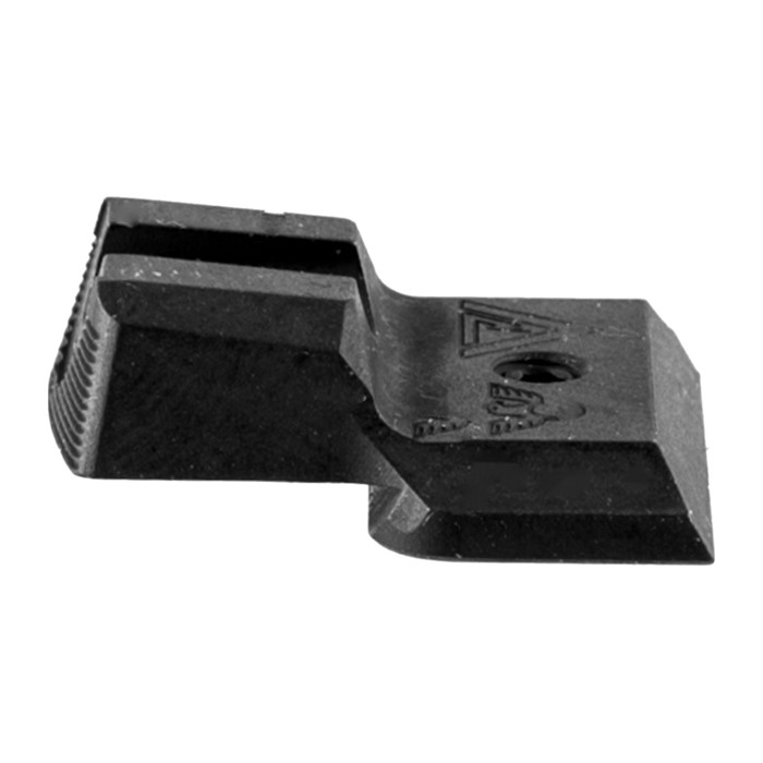The high-profile Vickers Elite Battlesight for the Smith & Wesson M&P® has a .145” wide, deep U-Notch for optimum sighting in low-light, dynamic range conditions and is a perfect match to our .125” wide front sights. The concave, non-reflective rear blade is serrated 40 lines per inch, while the notch area is recessed into a semi-circular pocket for a crisp, protected sight picture. A hardened set-screw ensures this sight will never shoot loose under the most demanding conditions. This snag-free rear sight also has a shelf shape that enables one-hand slide cycling or malfunction clearance and a rugged, non-reflective matte black parkerized finish. NOTE: Sights may require minor fitting and may not be returned after installation. The Vickers Elite Smith & Wesson M&P® Sight set requires the use of a .165” tall front sight for all barrel lengths/calibers (9mm, .40, .357, 45 ACP) except for Smith & Wesson M&P® PRO/longside versions that use the .180” height. Because of factory variances, sights may require minor fitting and may not be returned after installation. Not compatible with the S&W Shield® pistol. Wilson Combat Vickers S&W M&P rear sights are not compatible with factory M&P Pro C.O.R.E (Competition Optics Ready Equipment) slide models due to the rearward relocation of the sight dovetail position.