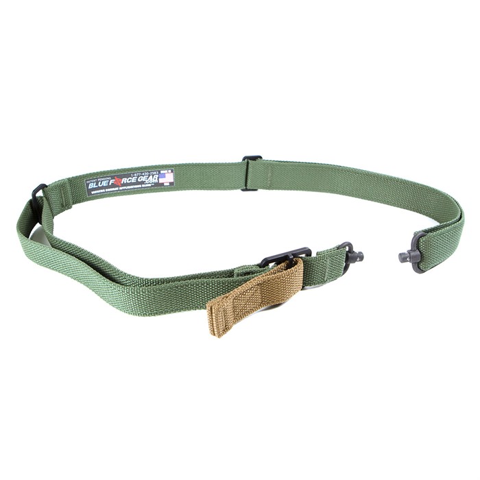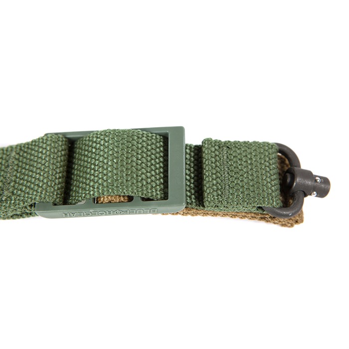 Der Sling verfügt über zwei Push Buttons: Ein 1” Push Button „QD“ Swivel ist vorne am Sling angenäht und ein weiterer 1.25" Push Button „QD“ Swivel ist hinten „gefangen“. Dies schafft einen einfachen, schlanken und leichten Sling, der an jede Waffe mit Schnellverschluss-Sockeln montiert werden kann. Die Push Button Swivels sind nicht abnehmbar, wodurch sie nicht verloren gehen oder der Sling falsch konfiguriert werden kann.
