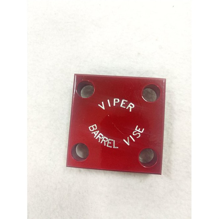 VIPER INTERNATIONAL-THE VIPER RIMFIRE/SPORTER BARREL TOP FEATURES: The Viper Rimfire/Sporter Barrel Top is just that. These tops are made to fit either the Viper (four-hole top) or the Python (two-hole top) barrel vise with rimfire/sporter barrels in mind. The tops will enable you to grip barrels as small as .500” to 1”. To use the Viper or Python Barrel Vise Rimfire/Sporter top just remove the nuts and washers from your Viper or Python Barrel Vise. Keep the springs in place, put the Rimfire/Sporter top onto your vise. On a sporter barrel- grip the barrel several inches away from the receiver/action on an area of the barrel that will make full contact with the barrel vise sporter top. On a rimfire barrel-Grip on an area of the barrel that will make full contact with the barrel vise near the receiver/action. On very tight action to barrel manufacturers companies that start with H, T or R a cardboard wrap is recommended to keep the barrel from slipping in the vise. These tops will handle over 90 ft/lbs. of torque on the nuts without bending. Viper advises wrapping the barrel when working with rifles where the torque of the action to barrel is unknown. Viper also advises wrapping the barrel when torquing the nuts over 50 lbs. This will help to prevent damage to the powder coat finish. This will help your Viper Barrel Vise last for years and years.