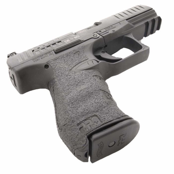 Walther Arms is known for producing pistols with excellent texturing and ergonomics, and the company's PPQ series is no exception. Some gun owners, however, prefer a different kind of grip texture, and the Talon Walther PPQ Grip Tape allows them to make those modifications easily. The Talon Walther PPQ Grip Tape provides a full wraparound grip that covers the side panels, thumb rests, front-strap finger wraps and backstrap of the gun in order to enhance the feel and secure a user's grip. Comes in rubber and granulate textures Color: black Features cutouts for all controls The Talon Walther PPQ Grip Tape fits both 9mm and .40 S&W models and requires no trimming to fit different size backstraps.