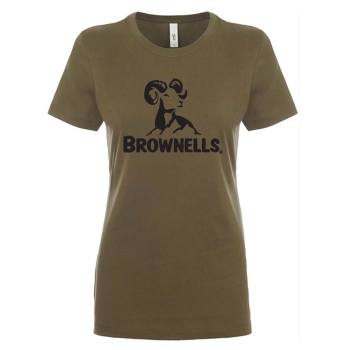 Hallo Damen! Unser WOMENS TRADEMARK T-SHIRT in Olive mit dem Brownells Logo ist perfekt für dich! Es vereint Stil und Komfort, ideal für jeden Tag oder besondere Anlässe.