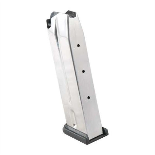 SPECS: Body - Highly polished stainless steel. Base Pad & Follower - Polymer, black. Capacity: .40 S&W – 12-rounds.
