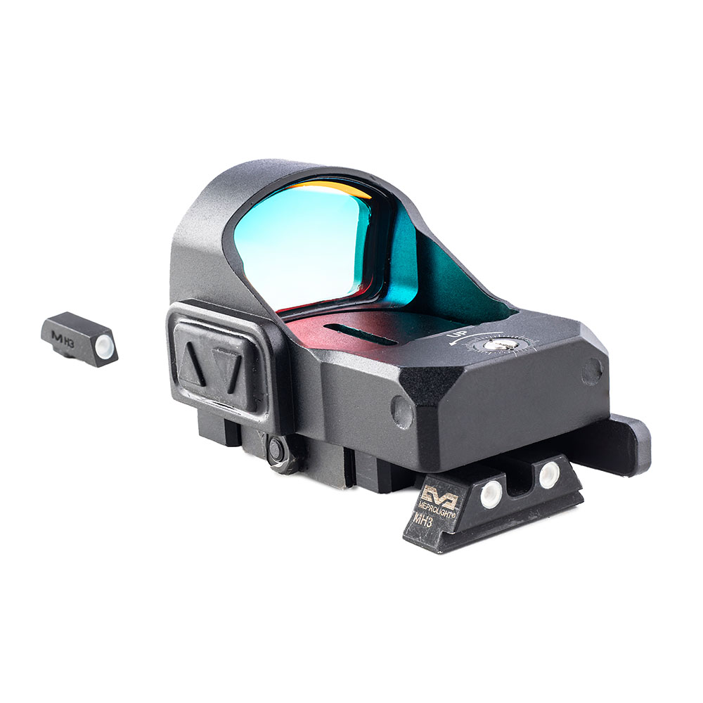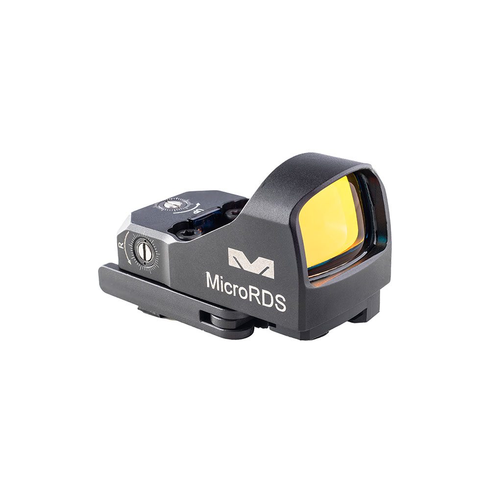 Der MEPRO microRDS bringt die schnelle Zielerfassung eines vollwertigen Red Dot Zielfernrohrs in eine kompakte Pistolenvisierung. Mit einem patentierten Quick-Detach (QD) Adaptersatz, der einfach im vorhandenen hinteren Visier-Dovetail-Schlitz der Pistole montiert wird, benötigst du kein Bohren, Gewindeschneiden oder einen Büchsenmacher.